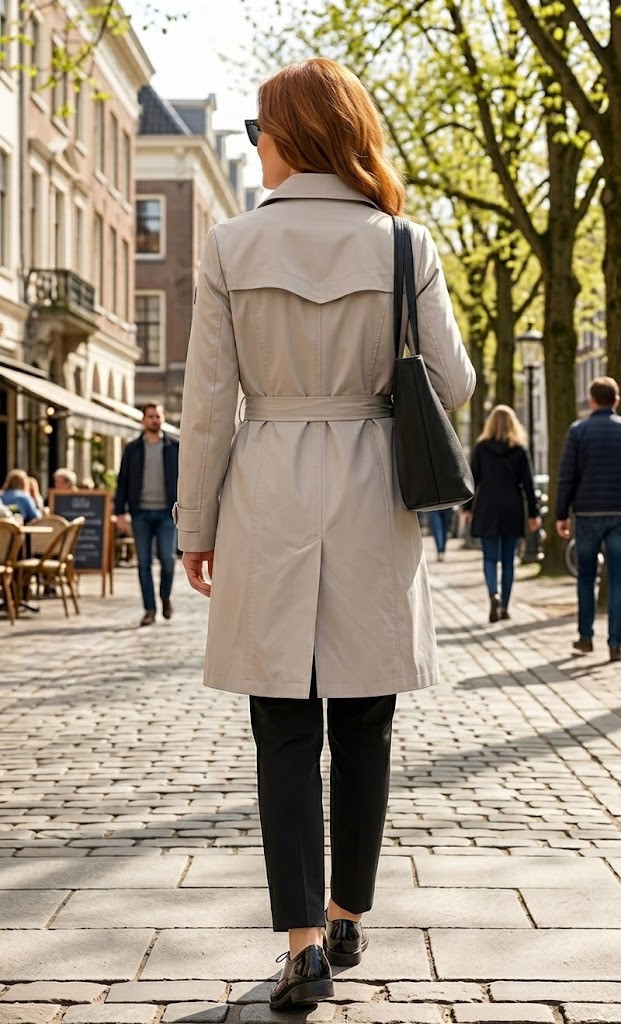 Tento kabát je ideální volbou pro každodenní nošení i formálnější příležitosti v jarním i podzimním období.